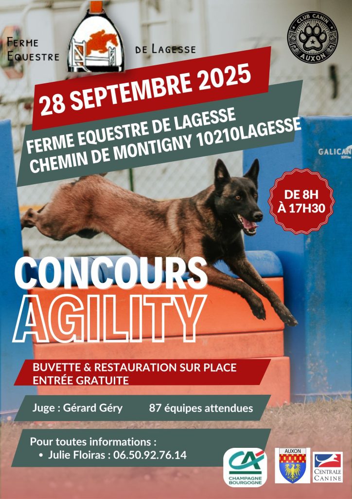 Dans le cadre de la 3e édition de la Semaine Nationale du Chien, le club canin Auxon organise un concours d'agility le dimanche 28 septembre à la ferme équestre de Lagesse.